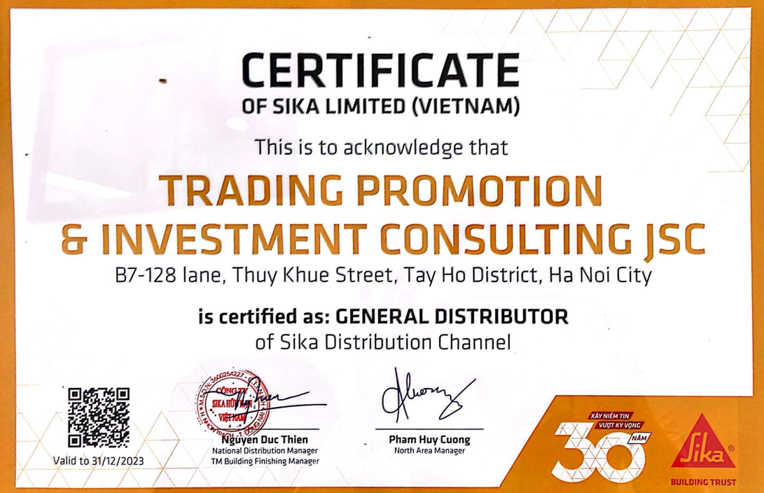 Với năng lực, uy tín và kinh nghiệm trong lĩnh vực chống thấm TNC đã được Sika hữu hạn Việt Nam chỉ định là tổng đại lý phân phối sản phẩm sika khu vực phía bắc.